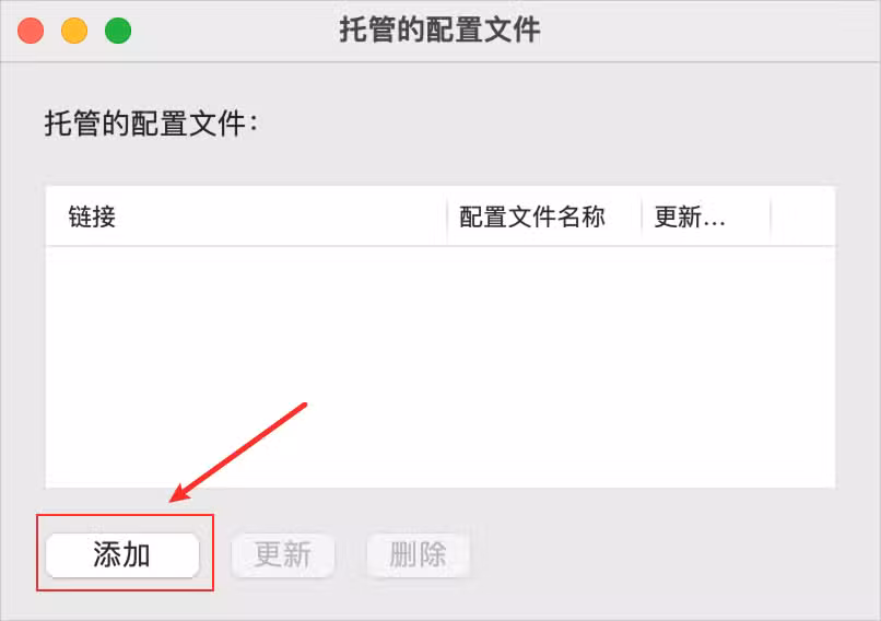 在“托管配置 / 配置文件管理”窗口,点击 添加 (Add / +)。